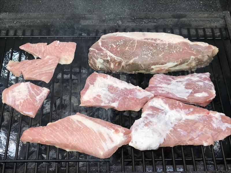 Hoy ha tocado parrillada de entrecot Angus y secreto del mercadona, acompañado de dos patatas asadas en las brasas.