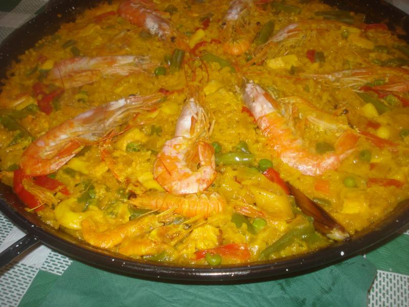Por fin he conseguido sacar la foto de la paella de Vicen, pescado y marisco, de rechupete.