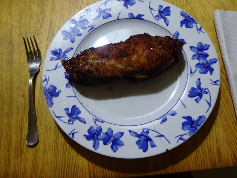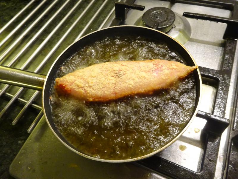Para cenar tronco de Rey frito con pan rallado, me sale, está mal que lo diga yo, de rechupete.
