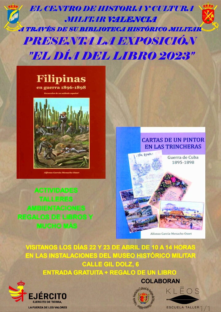 La Biblioteca Histórico Militar, del Centro de Historia y Cultura Militar de Valencia, organiza, la exposición "El día del Libro de 2023", que tendrá lugar, los próximos días 22, y 23 de abril, en el Museo Militar de Valencia.