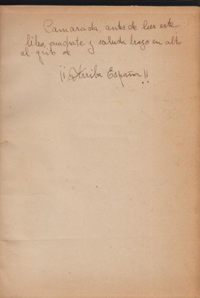 La dedicatoria de Franco de año 1938 creo que esta echa directamente sobre un libro