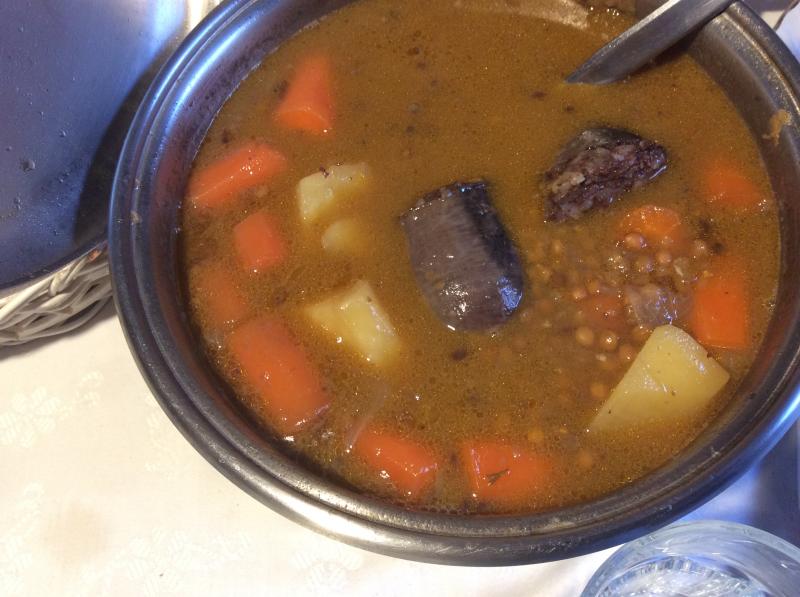 Lentejas de Tierra de Campos y morcilla de Villarcayo, todo de Castilla la Vieja, como me enseñaron de pequeñito...