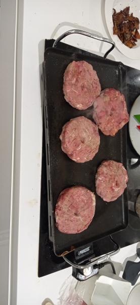De ayer. Vuelta a las hamburguesas de jabalí con los pocos níscalos que he encontrado