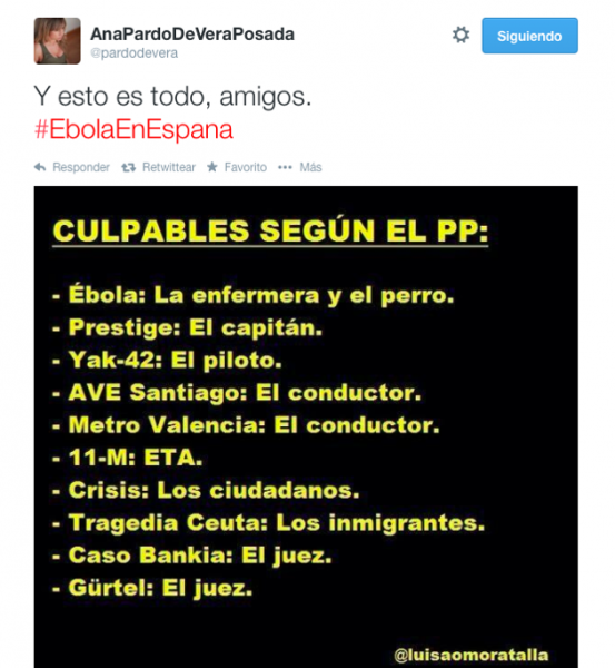 Poniendo el foco en la enfermera, encontrando alguien a quien culpar, alguien con cara y ojos y voz, empieza a difuminarse toda la larga línea de errores en este contagio.