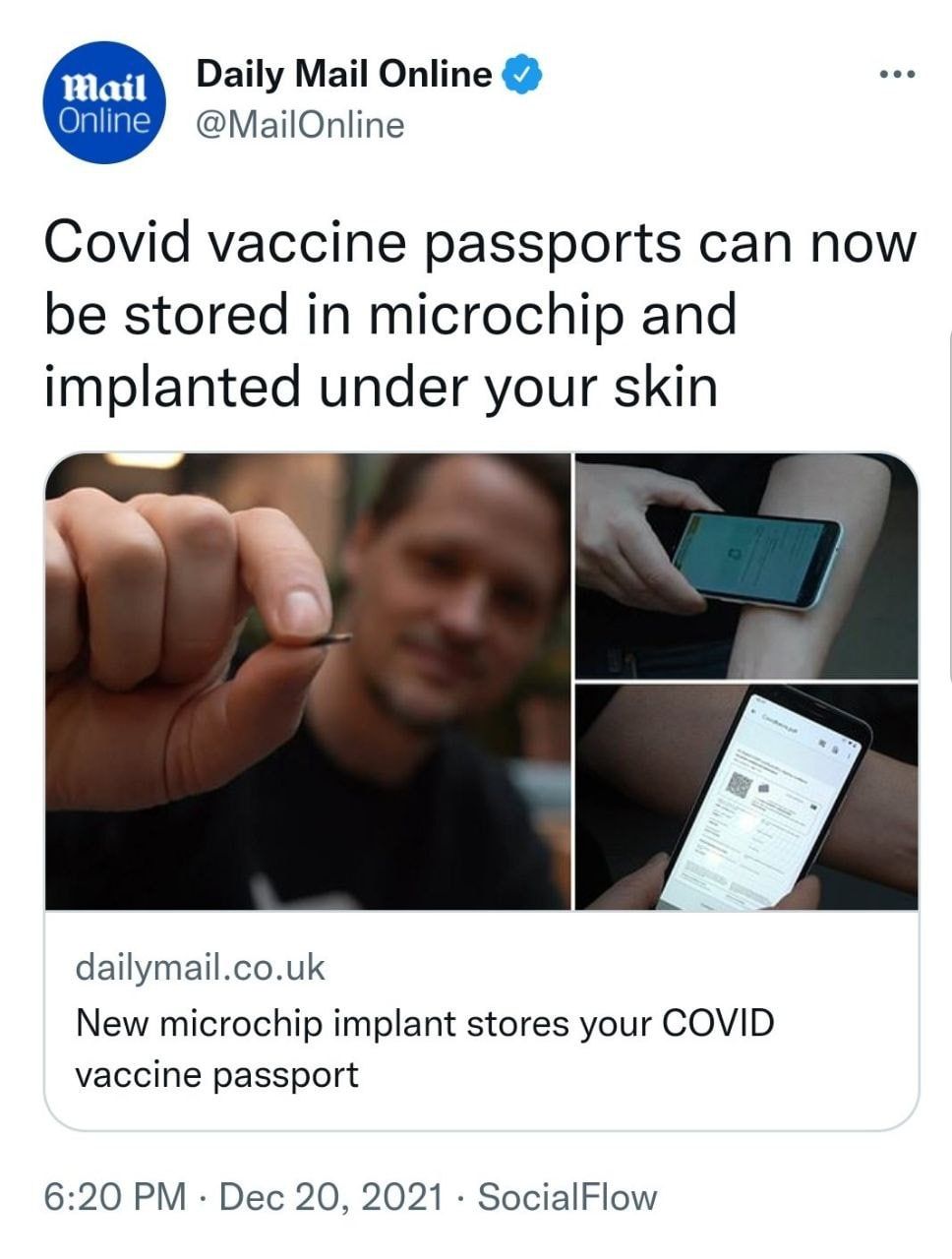 Eso esta bien un microchip implantado en el cuerpo para tener controlado al rebaño y poder identificarlos como va la hibridacion para mejorar nuestra especie y poder adecuarla a los fines extraterrestres... O aunque pensandolo bien igual somos una granja de comida gourmet mejorando nuestra especie para ellos... Voy a ponerme a escribir el guion de mi pelicula... :cow: :birra^: