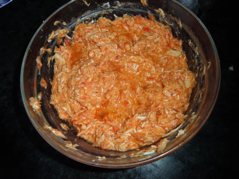 En un bol ponemos el contenido de una lata de Bonito del Consorcio escurriendo muy bien el aceite, se desmenuza a conciencia añadiendo tomate frito casero y un huevo duro muy picado, se trabaja hasta homogeneizar la masa y se rellenan las empanadillas que a continuacion se fríen o se hornean, a elegir, yo las prefiero fritas en AOVEX.![]()