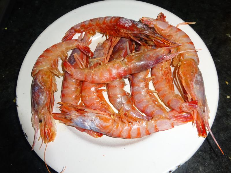 Hoy Gambas Rojas de Garrucha a la plancha y panchineta de nata de postre, para beber Coquinero de Osborne en cantidades omeopaticas.