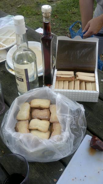 En la sobremesa entre el humo de los cigarros, degustamos una variedad de orujos y destilados tanto legales como sin etiqueta, de diversas procedencias, aspectos y graduación, como en la mili, vamos, acompañando los chupitos y buenos humos con criticas (¿sanas?) a los que faltaban, que para eso no estaban.