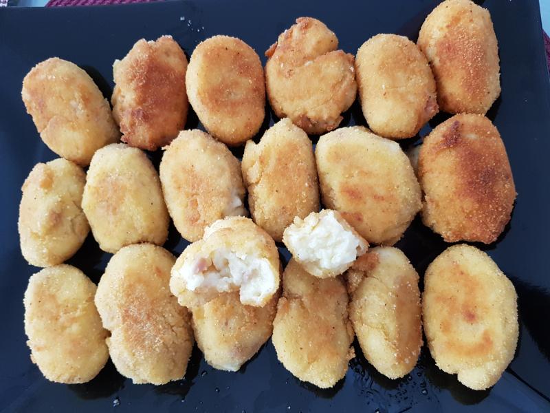 Hoy croquetas con jamón, de mi sra que hace una masa muy muy buena.