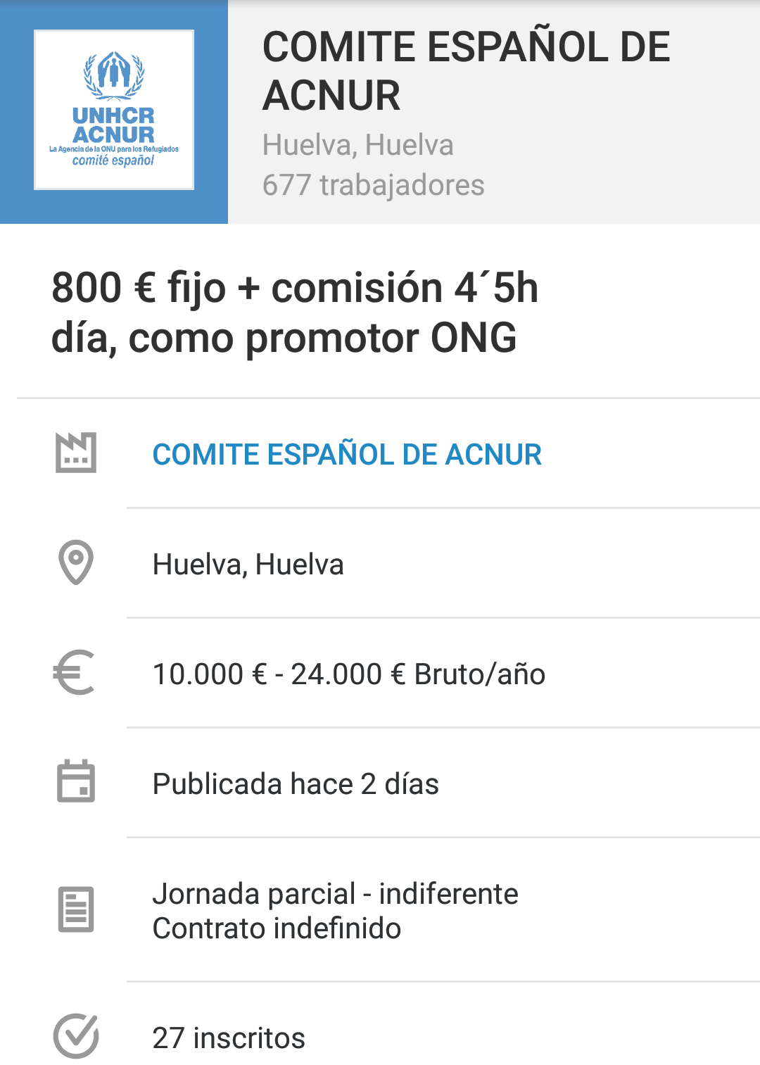 Solo te tienes que dar una vuelta por los portales de empleo de Internet y darte cuenta de las ofertas de empleo para captar donantes y socios............. se supone que es una Ong y la gente trabaja de forma altruista no ????????.