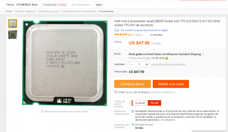 manolosolo escribió:Compañero, un Intel dual Core,comparado con un 286-386-486 de aquellas, es un maquinon......y por cierto, como sera una placa socket 775 seguramente, por unos 50 €, o algo menos, le puedes cambiar la CPU, comprado a los chinos, por un microprocesador Quad Core, de 4 núcleos a 3 Ghz, y aumentando un pelin voltajes en la Bios, y con un buen ventilador, llegar casi a los 4 GHz por núcleo, que quitando que igual la memoria se queda algo corta en velocidad, tendría la potencia de un I5 de 8ª Generación............![]()
