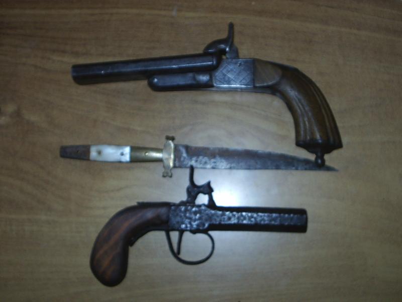 En lo más hondo del armero tengo una de las primeras armas de la humanidad,un hacha del paleolítico y luego una pistola Lefacheaux firmada,una daga sastaguina y un cachorrillo remendado...