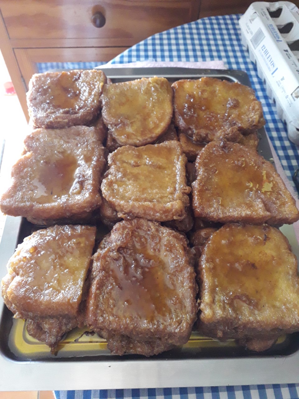 Siguiendo con las torrijas, por fin encontré la foto de las cuarenta y cuatro que se hizo.