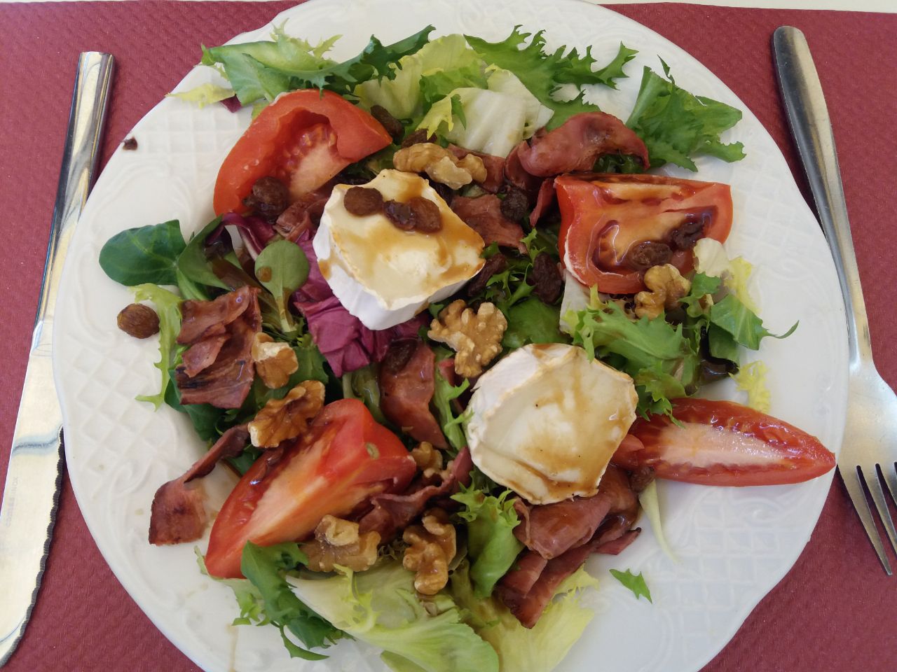 Un platito de ensaladilla rusa muy casera, y mi Sargenta una ensalada de queso de cabra y nueces, tomate, etc.