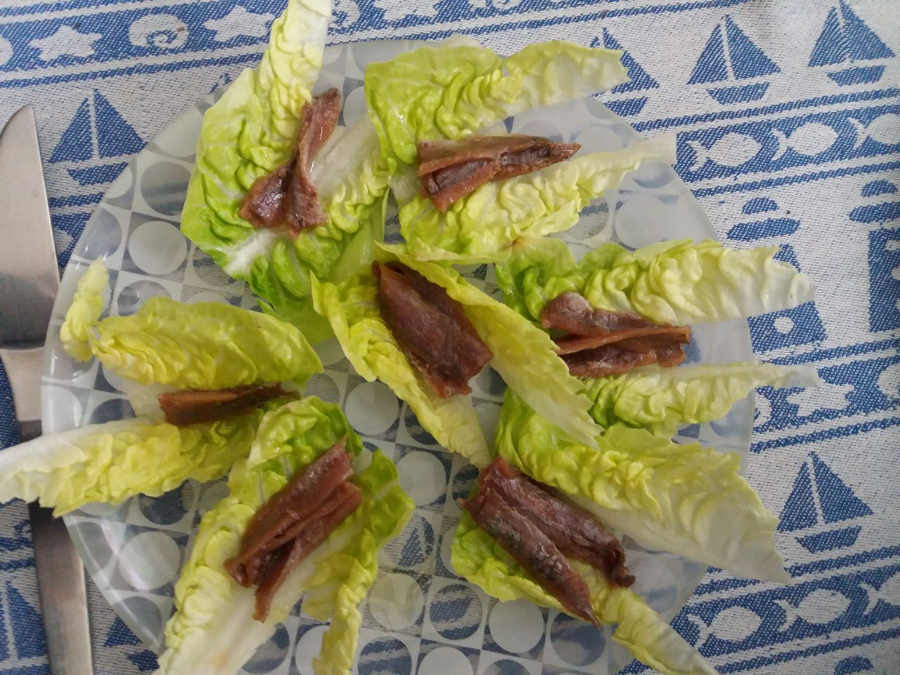 Cogollos con anchoas, y con ensalada de cangrejo.