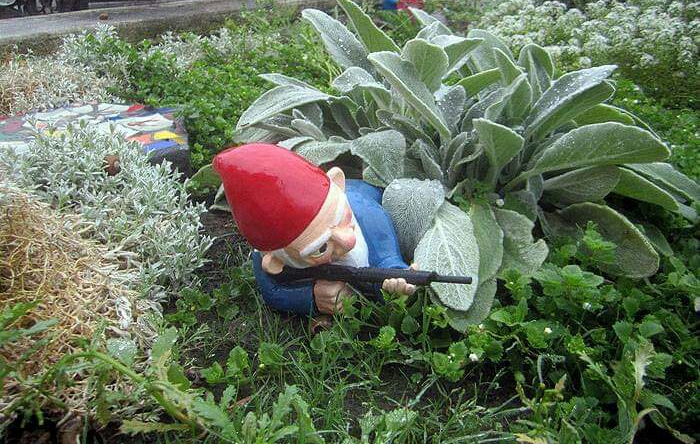 ¿Enanos de jardín armados hasta los dientes?, vaya vaya.
