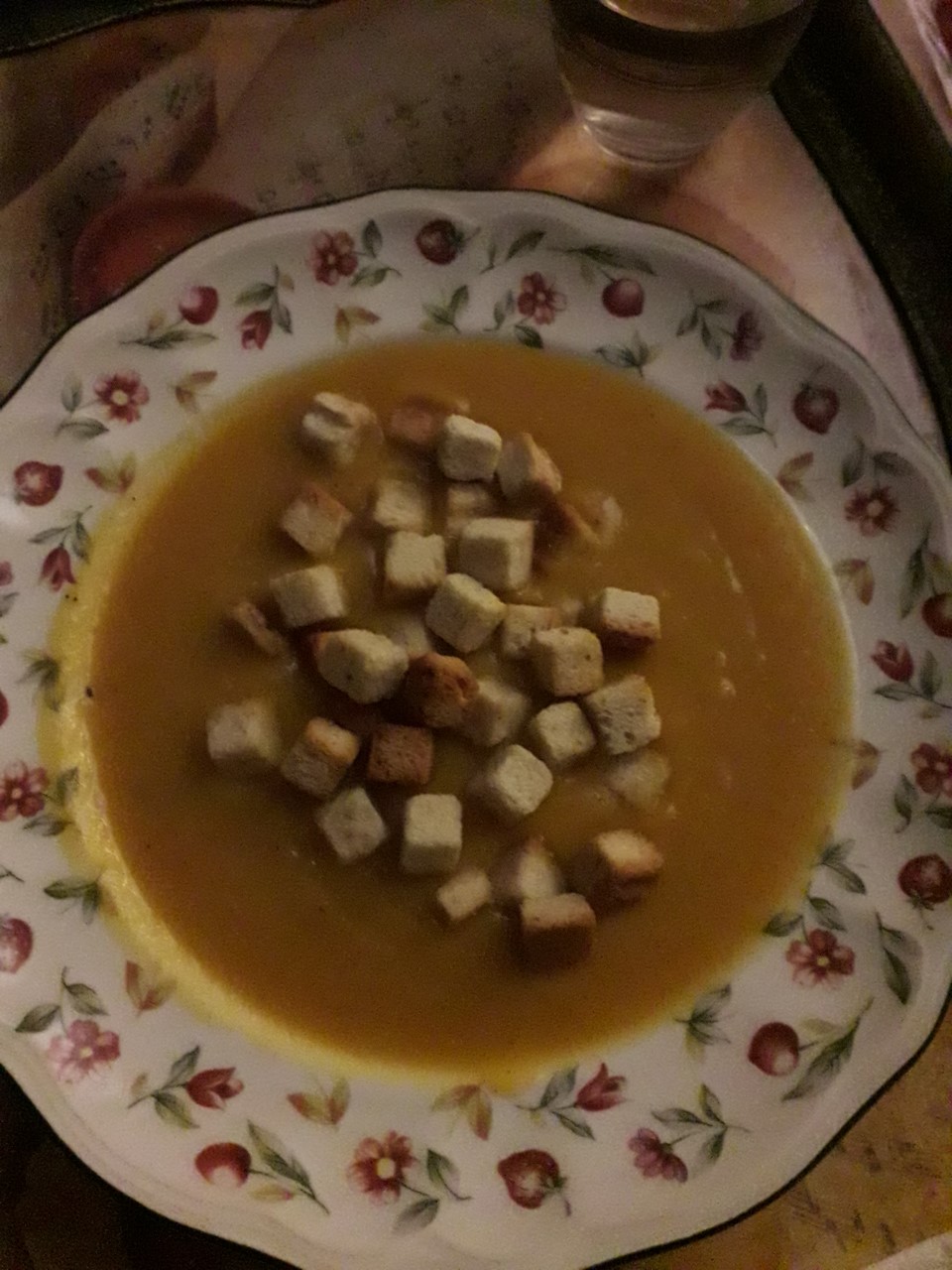 Puré de puerros y calabaza con picatostes. Hay que atajar al colesterol, aunque sea una continuación del ayuno.