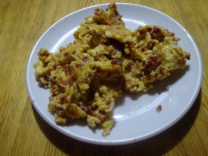 Al final deconstrucción de tortilla de jamón, tradicionalmente conocido como revuelto de jamón porque me ha salido mal la tortilla.![]()