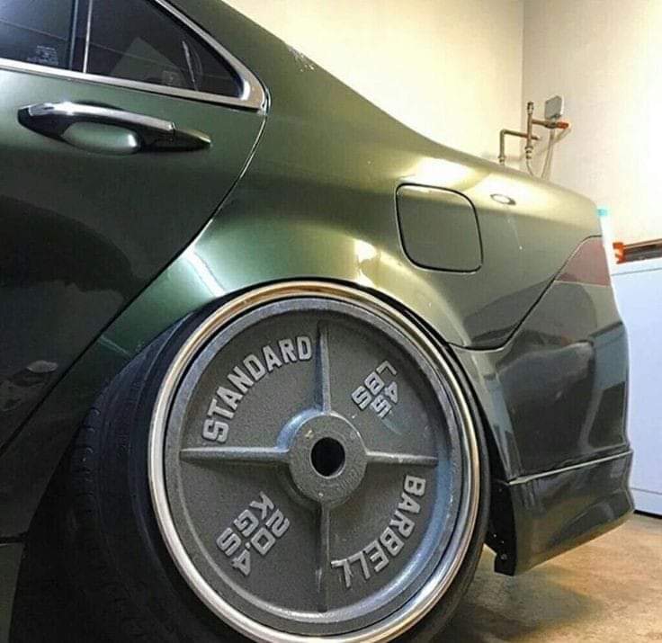 ¿Esa rueda no está tocando chapa? Tal vez sea uno de esos customizados a los que le han puesto suspensión hidroneumática y hasta que el motor no se pone en marcha y la bomba hidráulica funciona, el vehículo no se eleva dejando mayor altura respecto al suelo....