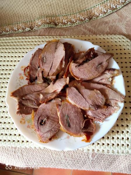 Linda pata de borrego asada, hasta aquí llega el delicioso aroma y esa salsita para mojar.......