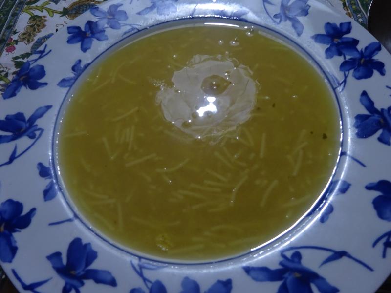 De cena sopa de pollo con fideos y tortilla a las finas hierbas, de postre platano y de bebercio agua del grifo, a ver si me voy a aficionar.........