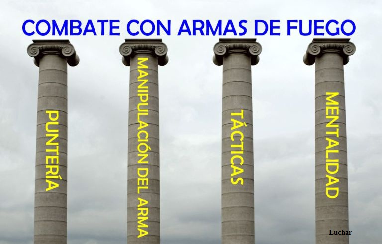 En lo que se refiere al uso de un arma de fuego, bien sea para tiro deportivo o como parte del combate con armas de fuego, existen una serie de principios básicos que es necesario conocer y dominar para tener éxito a la hora de colocar los impactos sobre el blanco, auténtico fin del propio disparo. Pero eso no es todo cuando se trata de combatir, sino que además habrán de tenerse en cuenta, y desarrollarse continuamente, lo que se ha venido en llamar pilares fundamentales del combate con armas de fuego. Estos cuatros pilares constituyen una evolución del Combate.