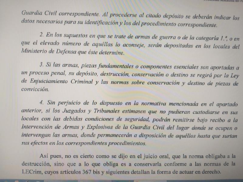 Y cierto no estoy cualificado para "criticar" sino puntualizar que lo que tu afirmaste en un medio de comunicación como OK Diario no se ajusta a lo que dispone el 166 respecto a la intervención, puesta a disposición judicial de armas por las FCS en procesos judiciales y posterior depósito. Y ojo..... que la regulación en ese caso no viene 40 articulos despues en el reglamento sino inmediatamente despues en dos apartados del mismo articulo. Osea ..... seguir leyendo y emitir una opinion cualificada, profesional veraz y ajustada a la norma en un medio de comunicación.