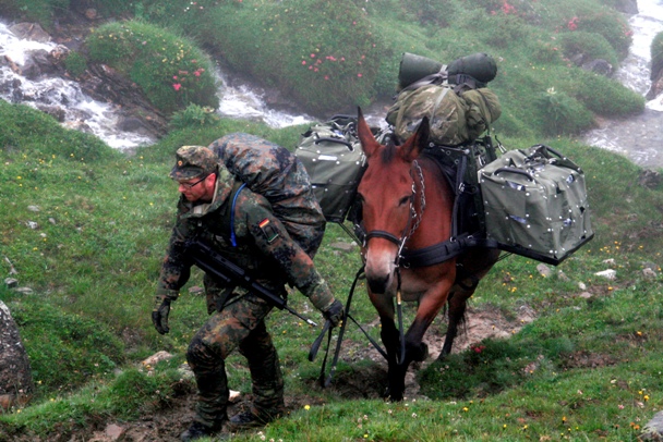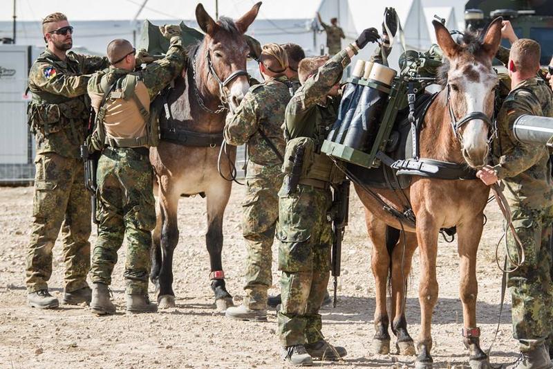 Bueno, cuando hice la mili en Ceuta, en la década de los 80, los Regulares, aun tenían un destacamento de burros de carga, un animal que siempre se ha usado, y seguirá usando por todos los ejércitos del mundo, por su fuerza y llevar todo tipo de materiales, por donde no puede ir otro vehículo....