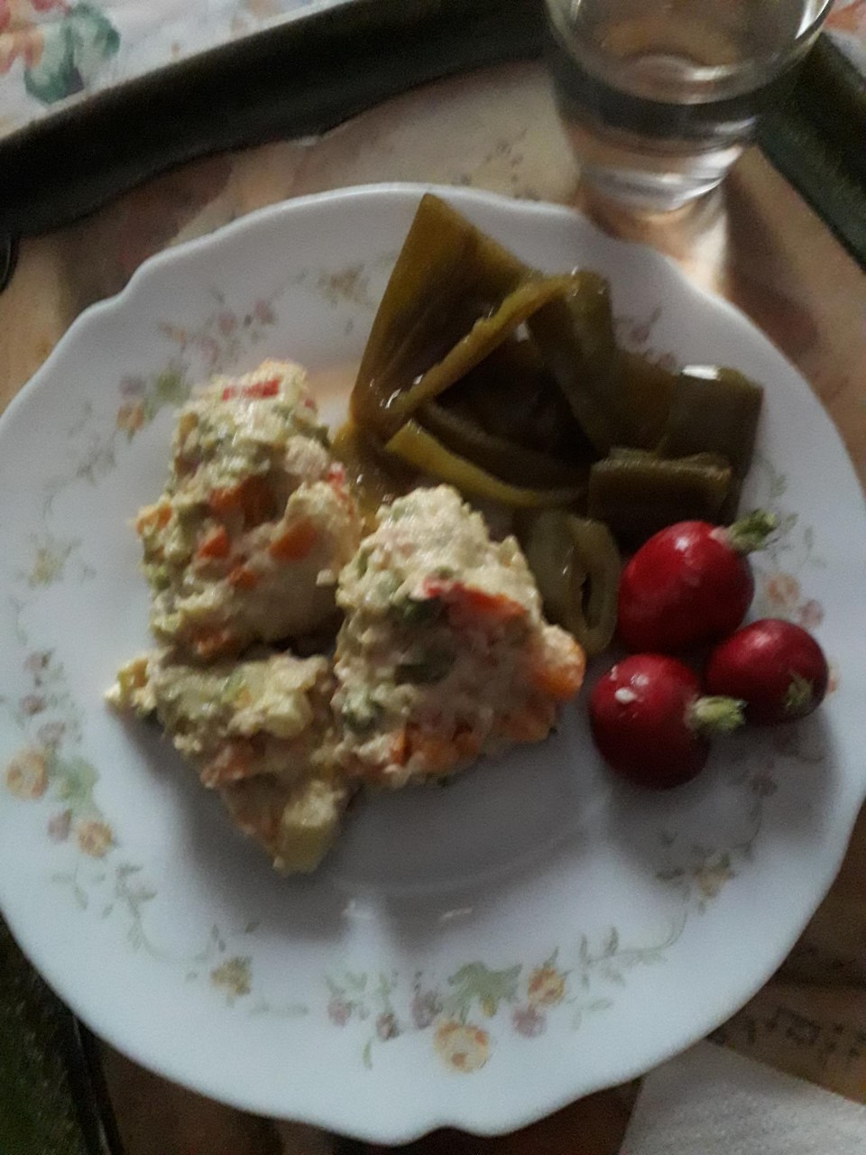 La mencionada ensaladilla con pimientos adobados y rabanitos.