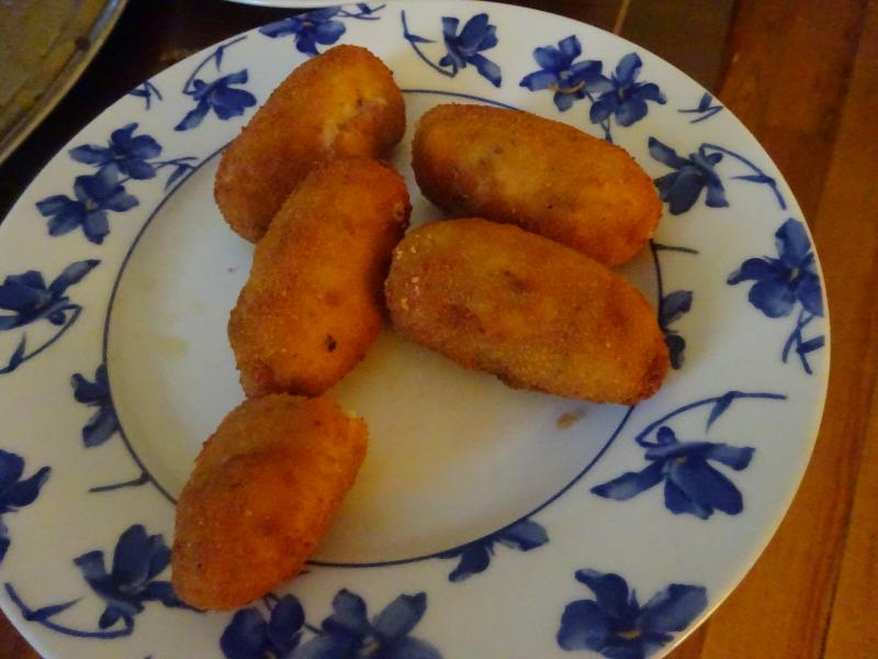 Para cenar croquetas de ave con jamon y huevo duro.