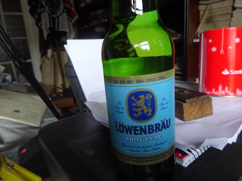 Lubina salvaje de + - un kilo que voy a poner al vapor con verduritas como el cabracho del otro día, para acompañar una excelenete y bavara cerveza Löwenbräu, se pide: Eien Lefenbrau Bitte.
