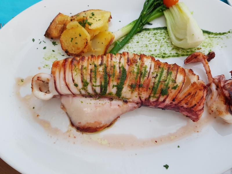 Se aderezó a la " brasa-plancha" con sal y punto. Y estaba muy buena, quizás la ilusión jugó su papel.
