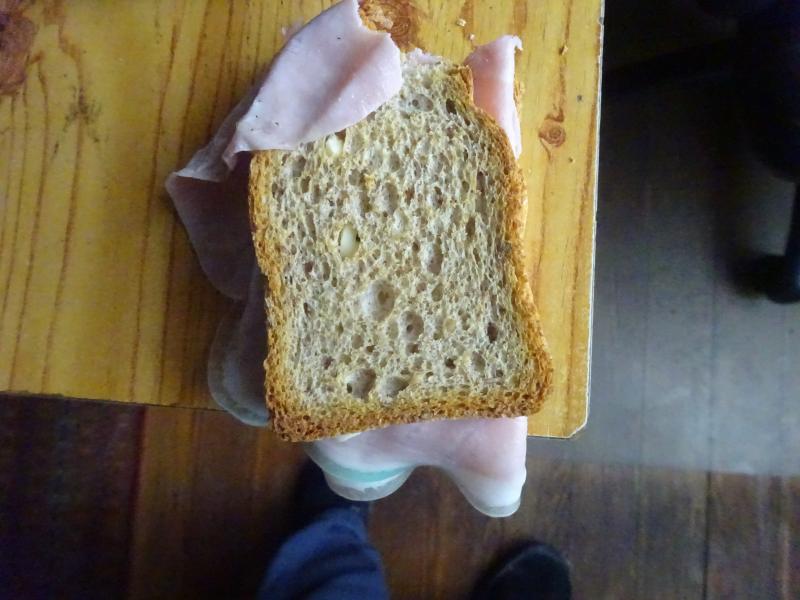 Para cenar, dos (2) BISCOTES SIN SAL NI AZUCAR CON CHORRITO DE HOJIBLANCA Y LONCHITA DE JAMÓN COCIDO.