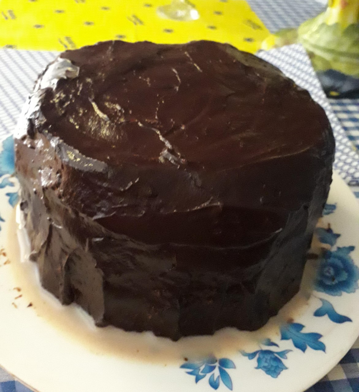 Y de postre un bizcocho con relleno y cobertura de chocolate..