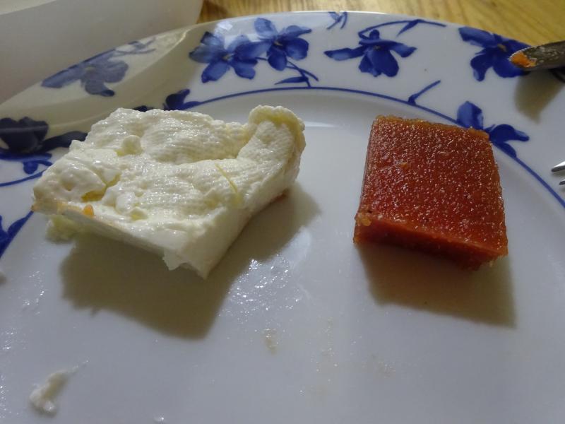 Coliflor al vapor con mayonesa y filete de merluzo a la romana, de postre queso fresco de Burgos con membrillo especial para diabeticos.