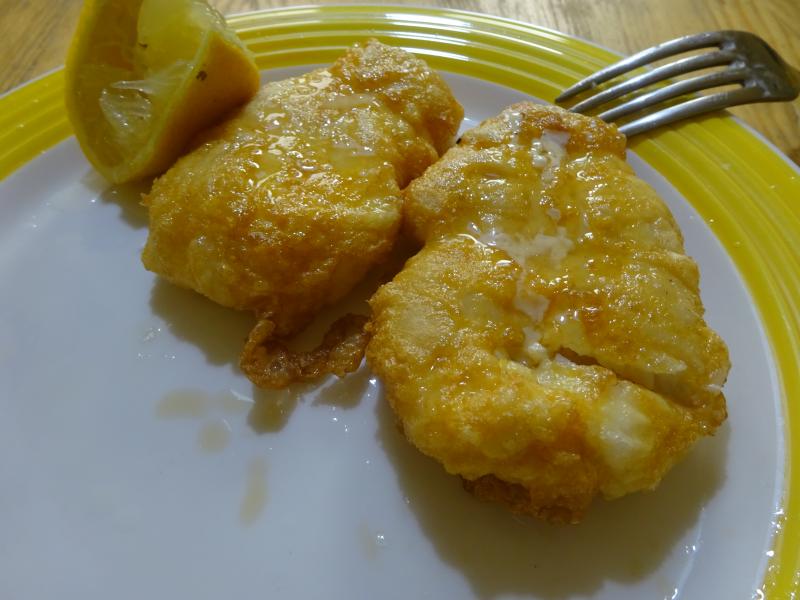 Rabas de aperitivo donde Alfredo y ya en casa más purrusalda y lengua en salsa española que tenía congelada, mejor comida recien hecha, en el congelador pierde fuelle, de postre compota manzanera.