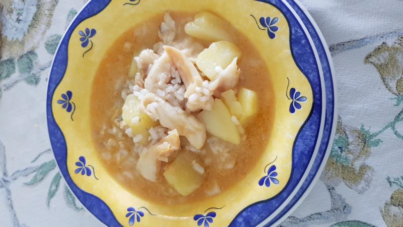 Hoy he preparado un guiso de patatas con arroz y bacalao