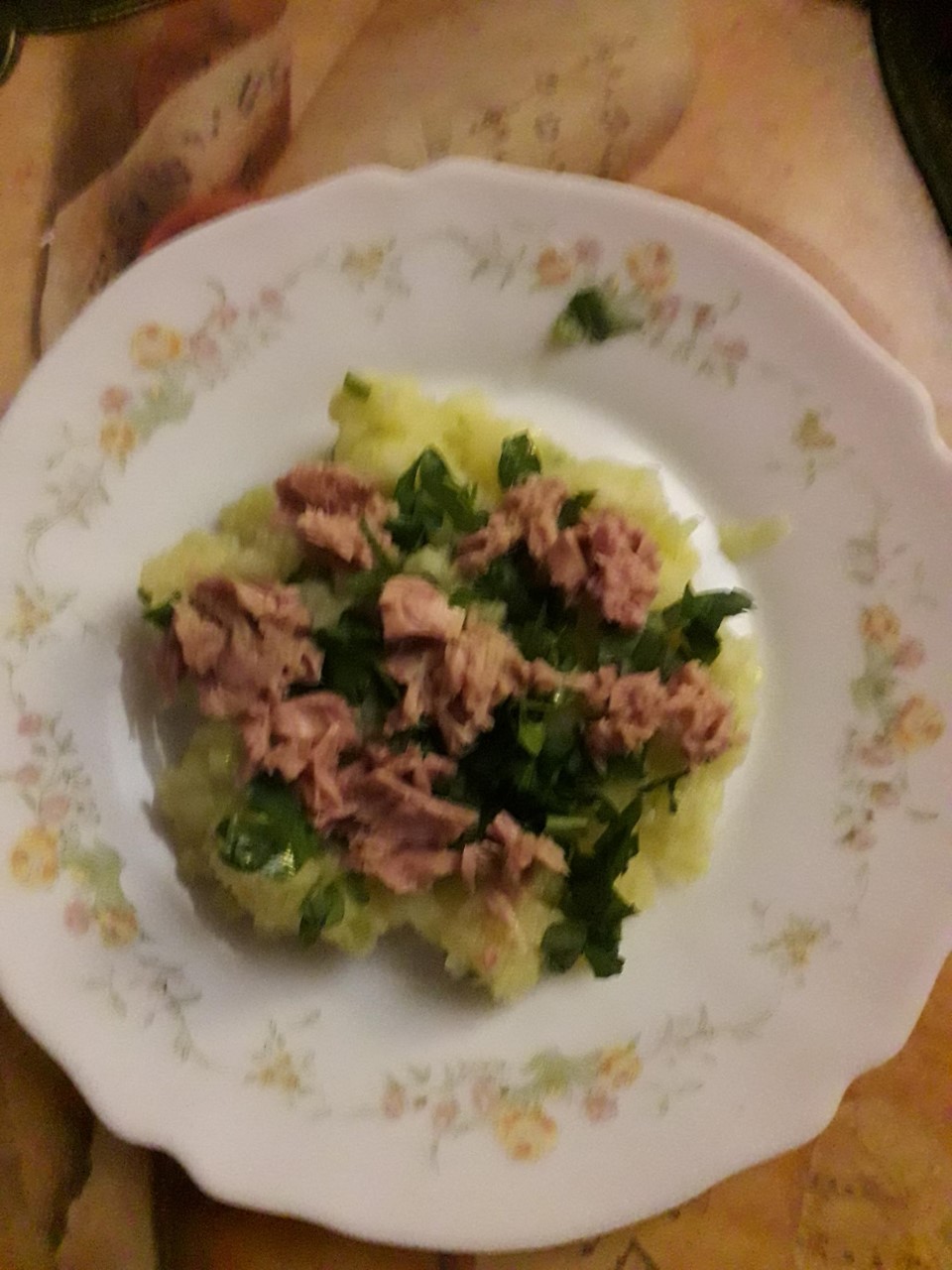 Ensaladilla Nacional sin patata, por lo de la fecula y la diabetes, te lleva media mañana prepararla pero el resultado merece la pena, la mayonesa no tiene huevo y se hace con leche, lactonesa y sin sal, zumo de limon y AOVEX Hojiblanca, dos platos han caido, de postre pera limonera y para beber Mahou Clasica muy fría.