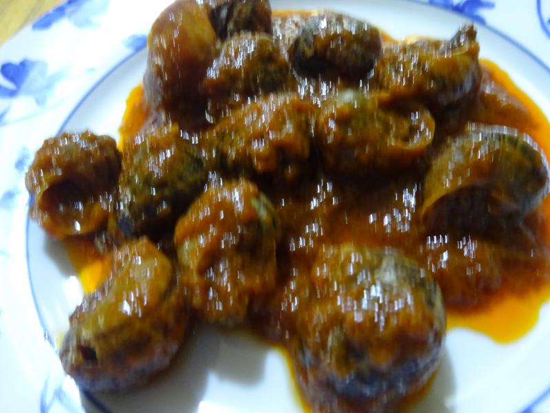 Para comer hoy: Caracoles de viña en salsa vizcaina.