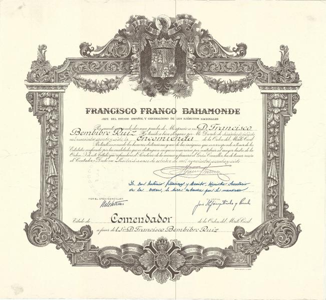 Titulo de COMENDADOR de la Orden del Merito Civil.