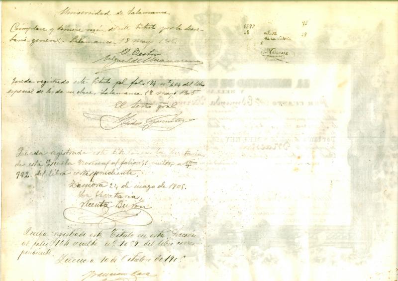 Expedido en 1908 por la Universidad de Salamanca.
