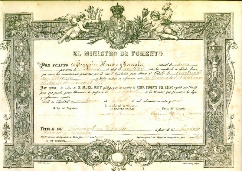 TITULO DE LICENCIADO EN DERECHO PARA PODER EJERCER COMO ABOGADO. de 1898.