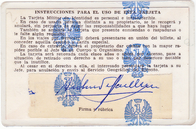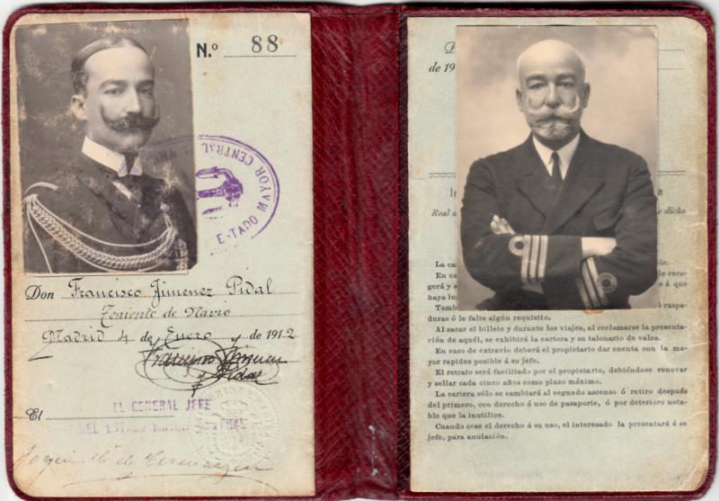 Tarjeta Naval de identidad de 1912 en su época de Teniente de Navío.