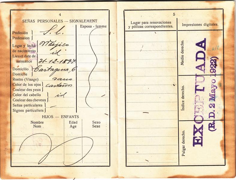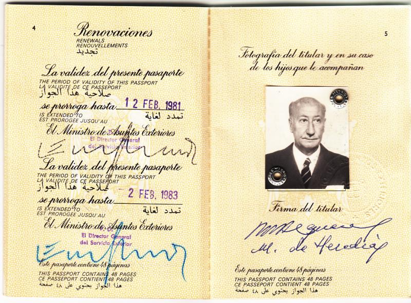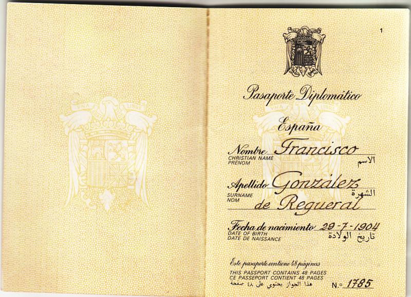 PASAPORTE DIPLOMATICO del marido de Maria del Carmen y padre de Franciso de Asis.