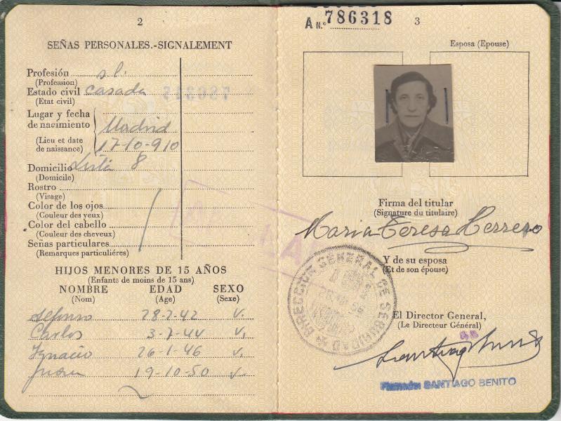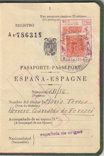 Pasaporte de 1956 de Maria Teresa Herrero Garralda hija mayor de José Ignacio de
