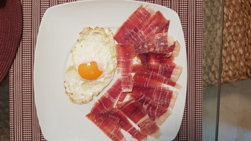 Por añadir una crítica constructiva , para mi gusto falta otro huevo y algo de aceite , opcional que el jamón sea crudo ó pasao por la sartén .