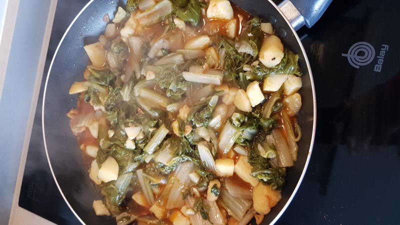 Las lentejas se niegan, las da vergüenza, así que pongo, acelgas con patatas reogadas con ajo y pimentón de la vera.