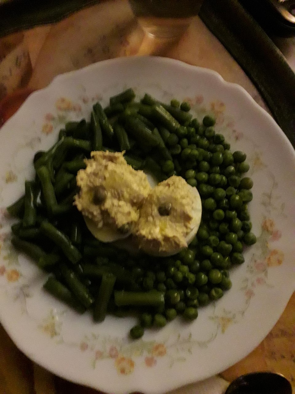 Huevos rellenos con guarnición verdulera que no necesita Omeprazol.