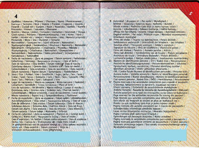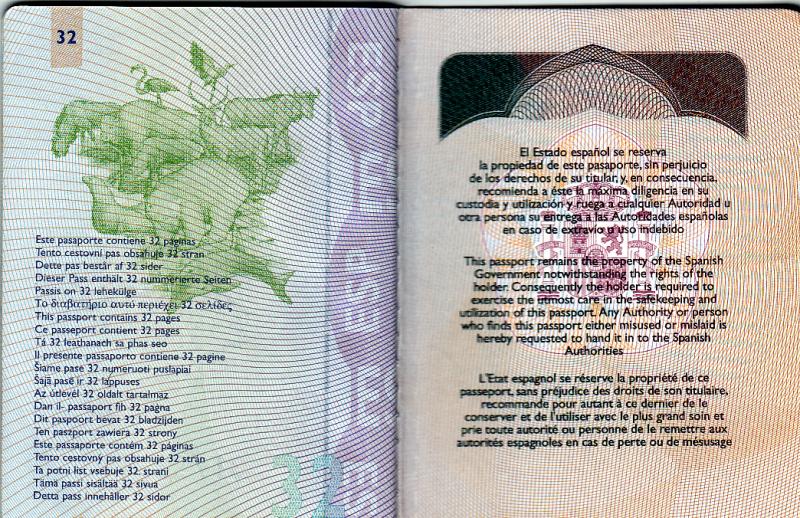 Imagenes de un pasaporte Español expedido en el año 2011