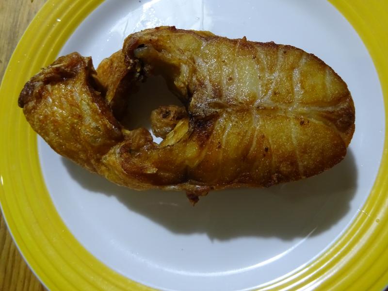 Rodaja de rey (besugo de la Habana) frito en AOVEX y para beber Mahou 0,0